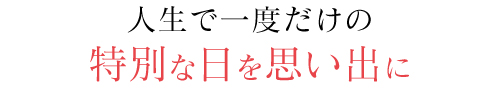 そんな人生の晴れ舞台に相応しい衣装で着飾り、大切な日を生涯の思い出となるようお手伝いいたします。